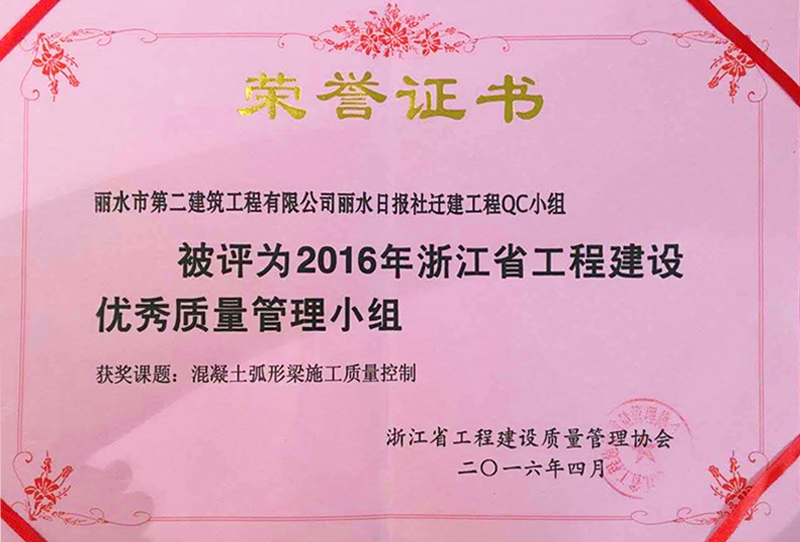 浙江省工程建設(shè)優(yōu)秀質(zhì)量管理小組 2016-04-23 16:19:46 7 上一篇 : 浙江省QC成果二等獎(jiǎng) 下一篇 : 先進(jìn)建筑業(yè)企業(yè)